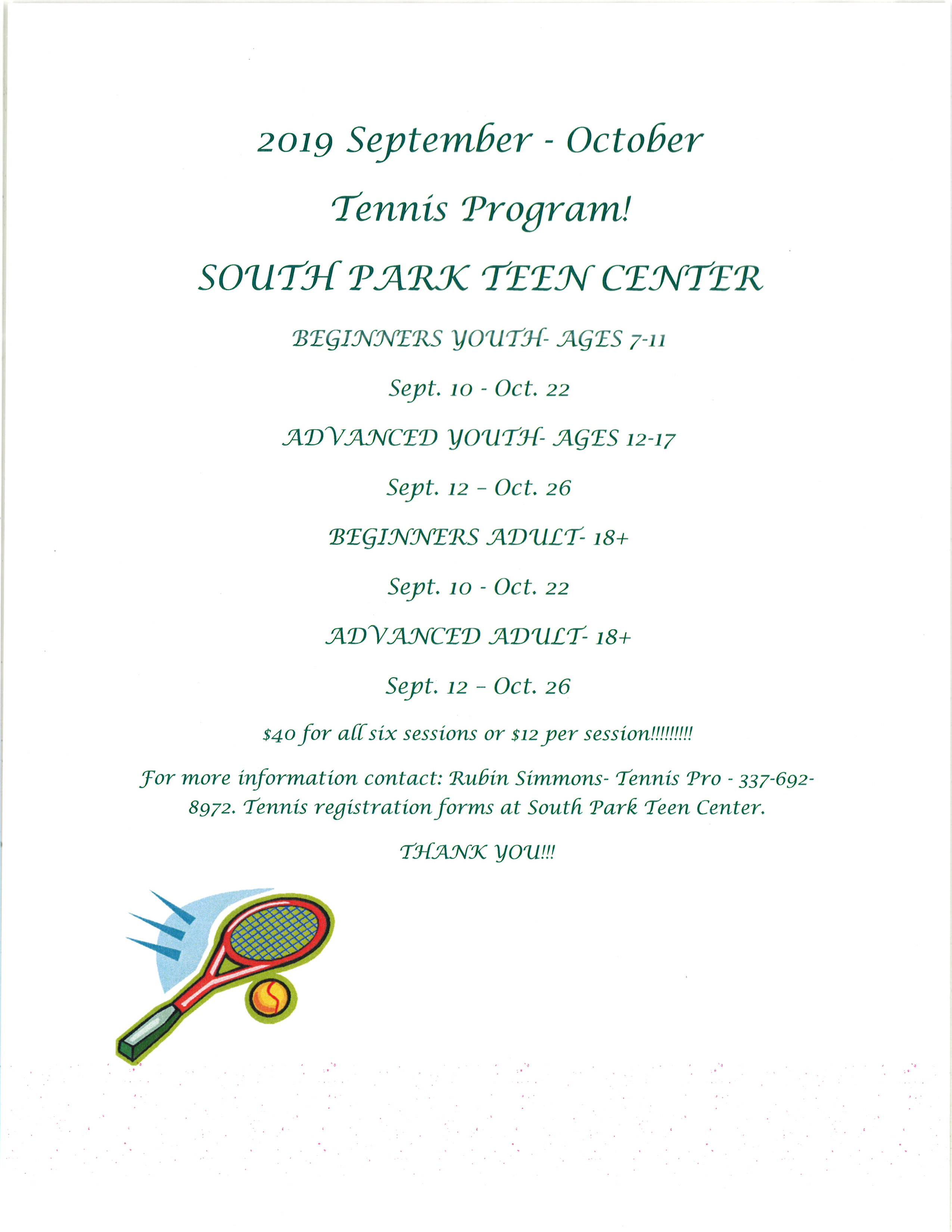 2019 South City Tennis Program