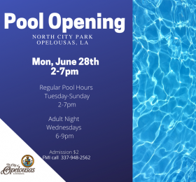 June 28, 2021 - September 21, 2021 @ All Day - This summer the pool at the North City Park will be reopening. The hours for the pool are...